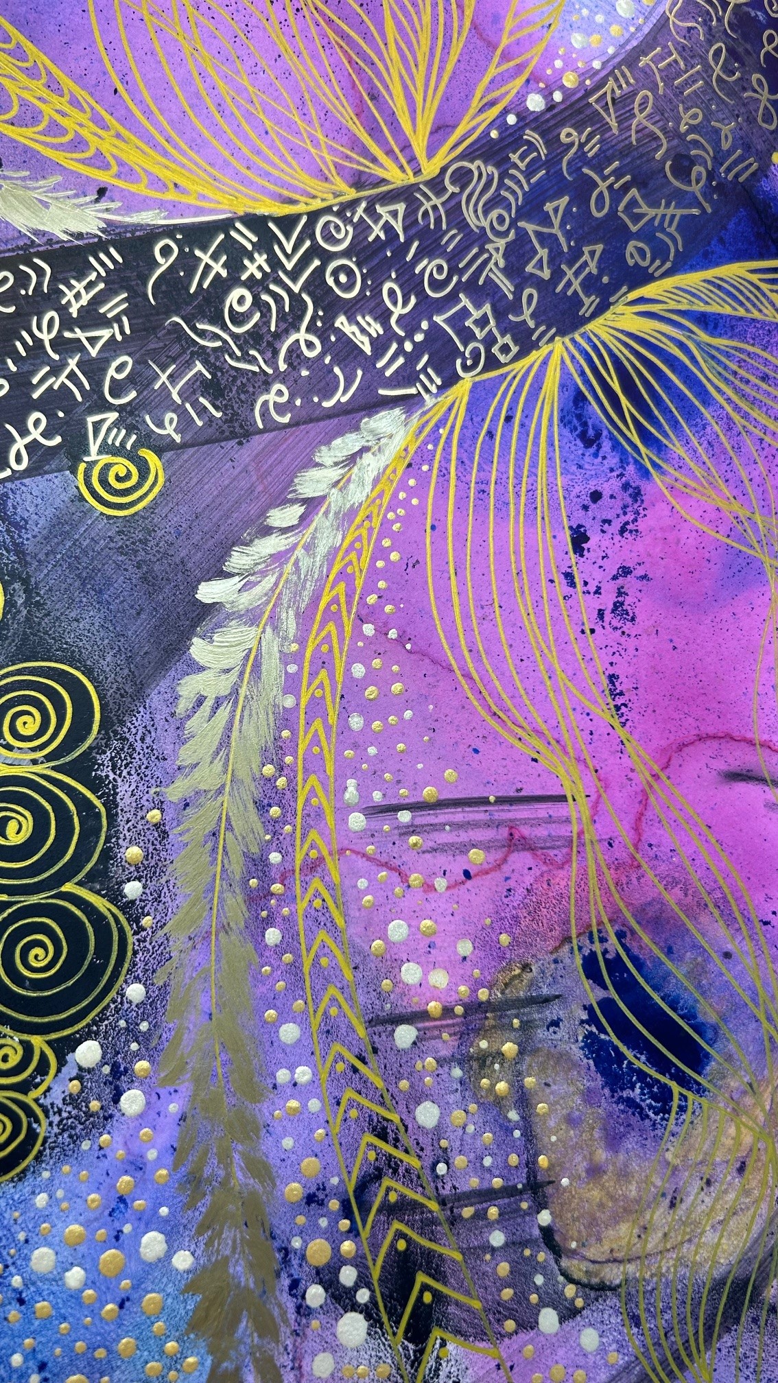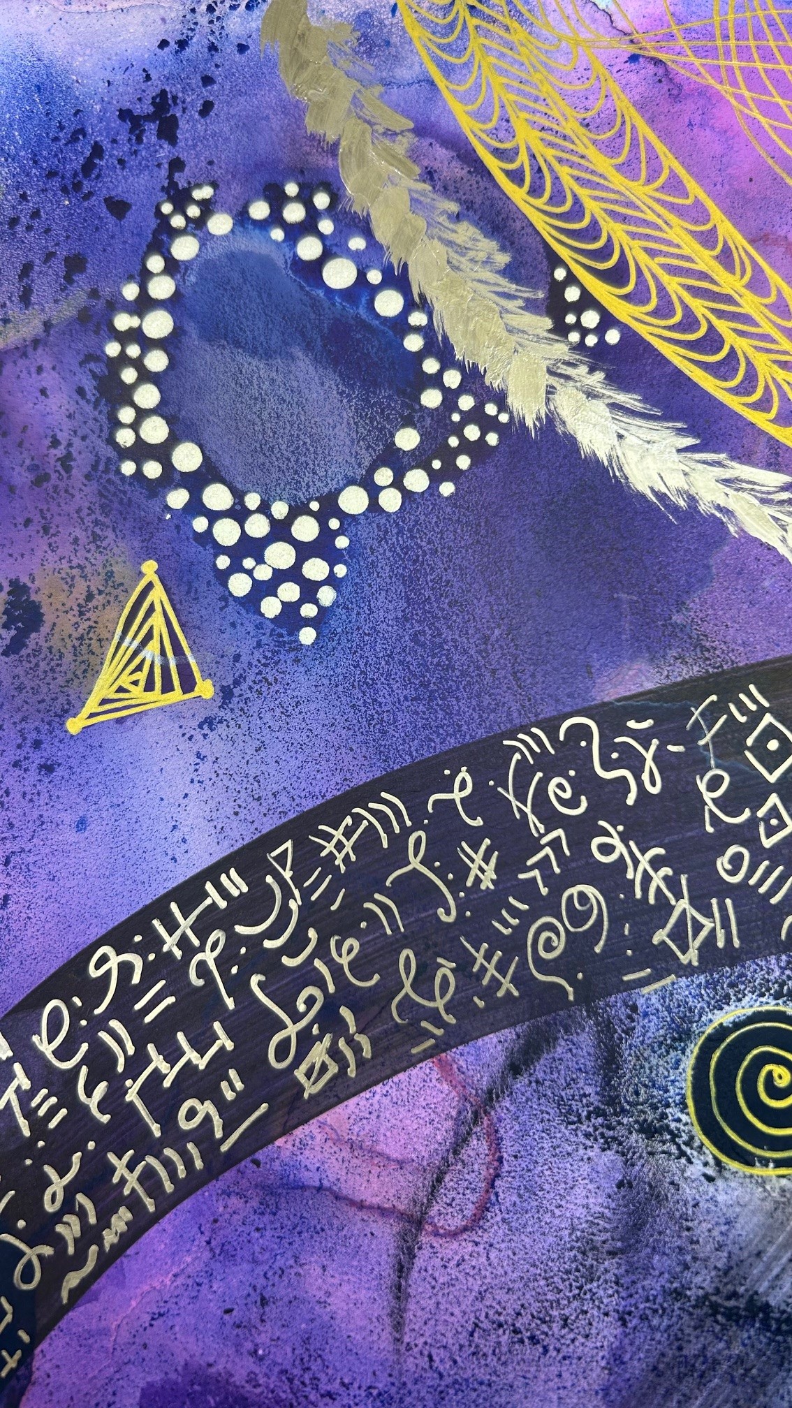 The final elements of this painting came through to me a week after my Dad passed. This painting represents the love and peace of my Dad transitioning back to his celestial home where he is healthy, free, and joyful. And I am grateful. Love is eternal.