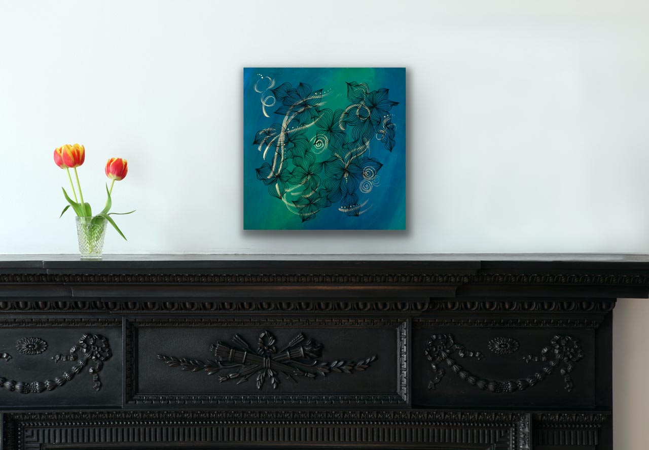 Each painting is signed and dated, and a wire hanging fixture is installed. I protect my paintings with several layers of Isolation Coat and Archival Gloss Varnish. You can immediately enjoy your art in your home or office without the barrier of a glass frame, so the energy and love of the painting comes through directly to you.