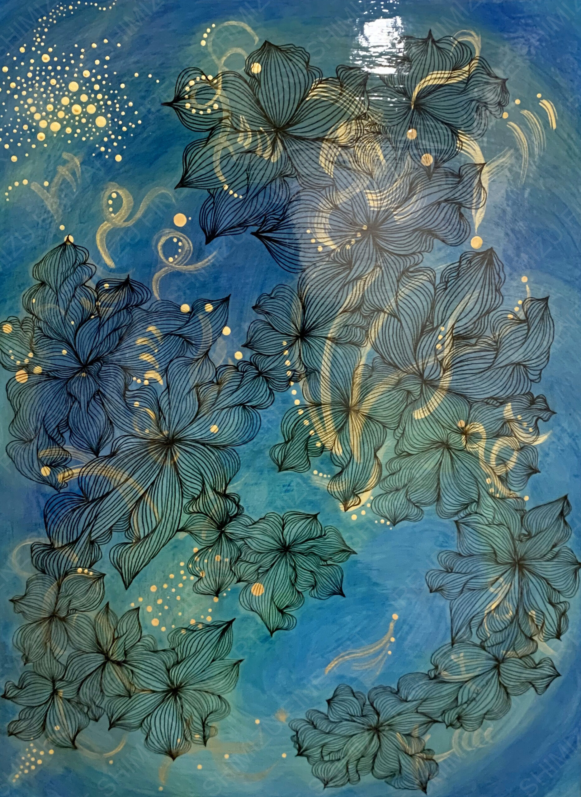 Each painting is signed and dated, and a wire hanging fixture is installed. I protect my paintings with several layers of Isolation Coat and Archival Gloss Varnish. You can immediately enjoy your art in your home or office without the barrier of a glass frame, so the energy and love of the painting comes through directly to you.