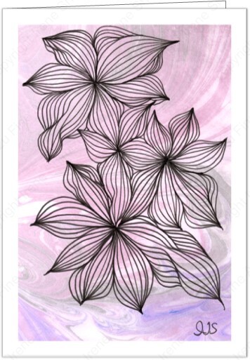 The “Love in Bloom” series was created with a hand-marbled pattern background to showcase the lovely flowers.
