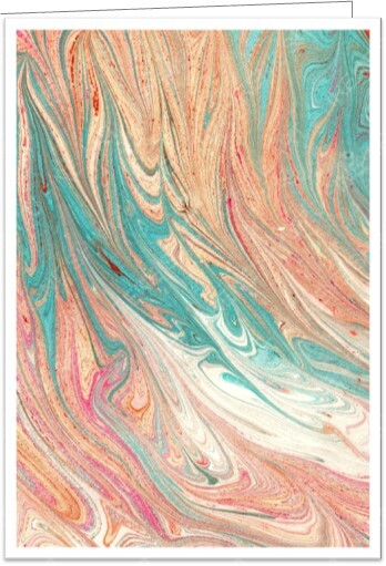 The cards in the “MARBLED” series are made with many drops of ink. I make each painting drop by drop. After all the drops have been laid onto the water bath, I create ethereal, unique marbled patterns by manipulating the paints with a comb, rake, or stylus. The flow of the patterns comes from the nudges I receive from the Universe. I like to envision another dimension or realm as I create these beautiful marbled patterns. Come flow with me!