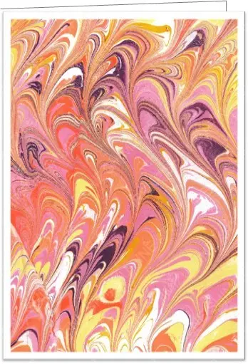 The cards in the “MARBLED” series are made with many drops of ink. I make each painting drop by drop. After all the drops have been laid onto the water bath, I create ethereal, unique marbled patterns by manipulating the paints with a comb, rake, or stylus. The flow of the patterns comes from the nudges I receive from the Universe. I like to envision another dimension or realm as I create these beautiful marbled patterns. Come flow with me!
