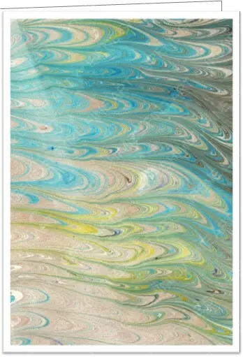 The cards in the “MARBLED” series are made with many drops of ink. I make each painting drop by drop. After all the drops have been laid onto the water bath, I create ethereal, unique marbled patterns by manipulating the paints with a comb, rake, or stylus. The flow of the patterns comes from the nudges I receive from the Universe. I like to envision another dimension or realm as I create these beautiful marbled patterns. Come flow with me!