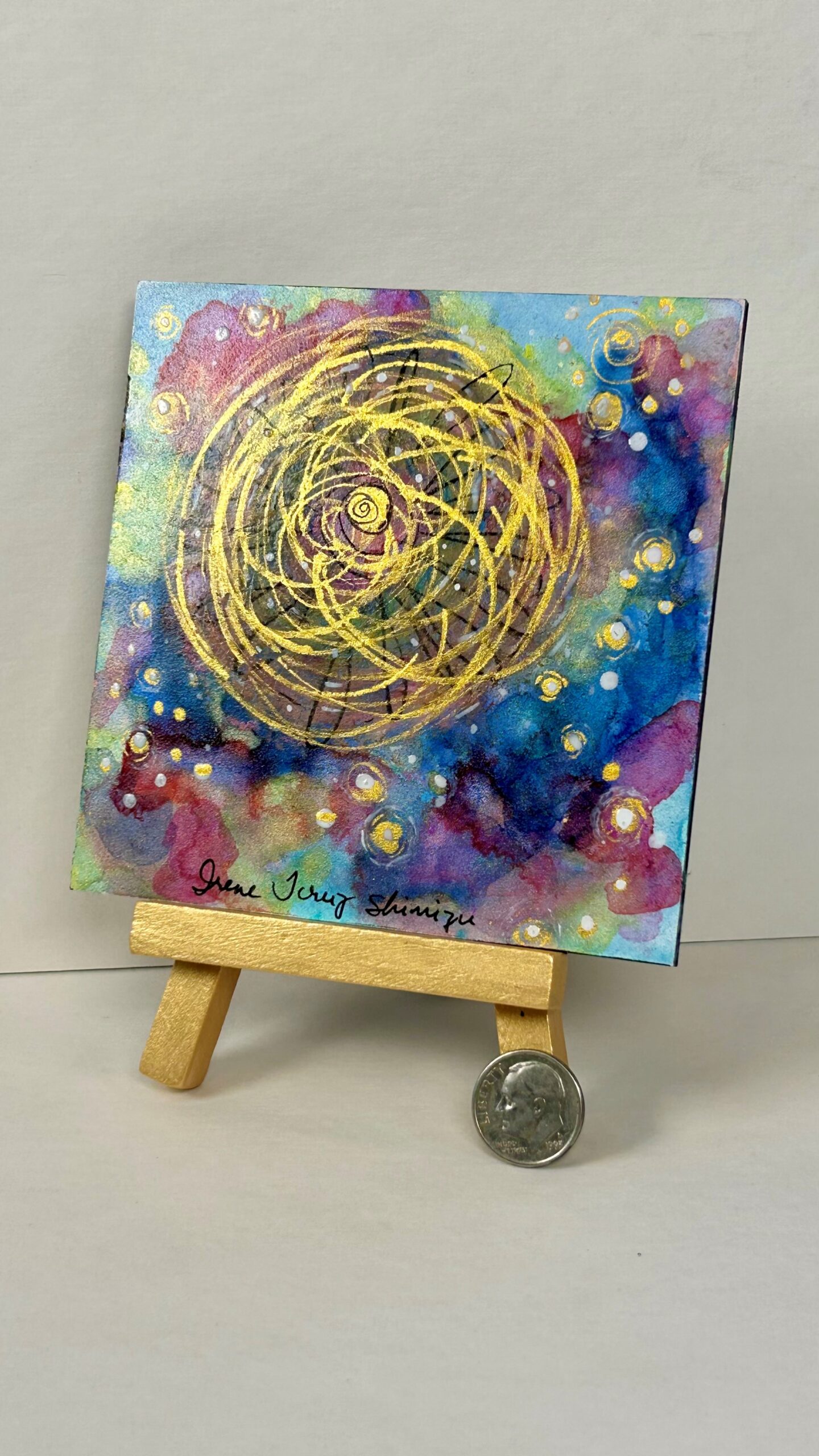 Each painting is signed and dated, and includes a golden wood easel. I protect my paintings with several layers of Isolation Coat and Archival Gloss Varnish.  You can immediately enjoy your art in your home or office without the barrier of a glass frame, so the energy and love of the painting comes through directly to you.
