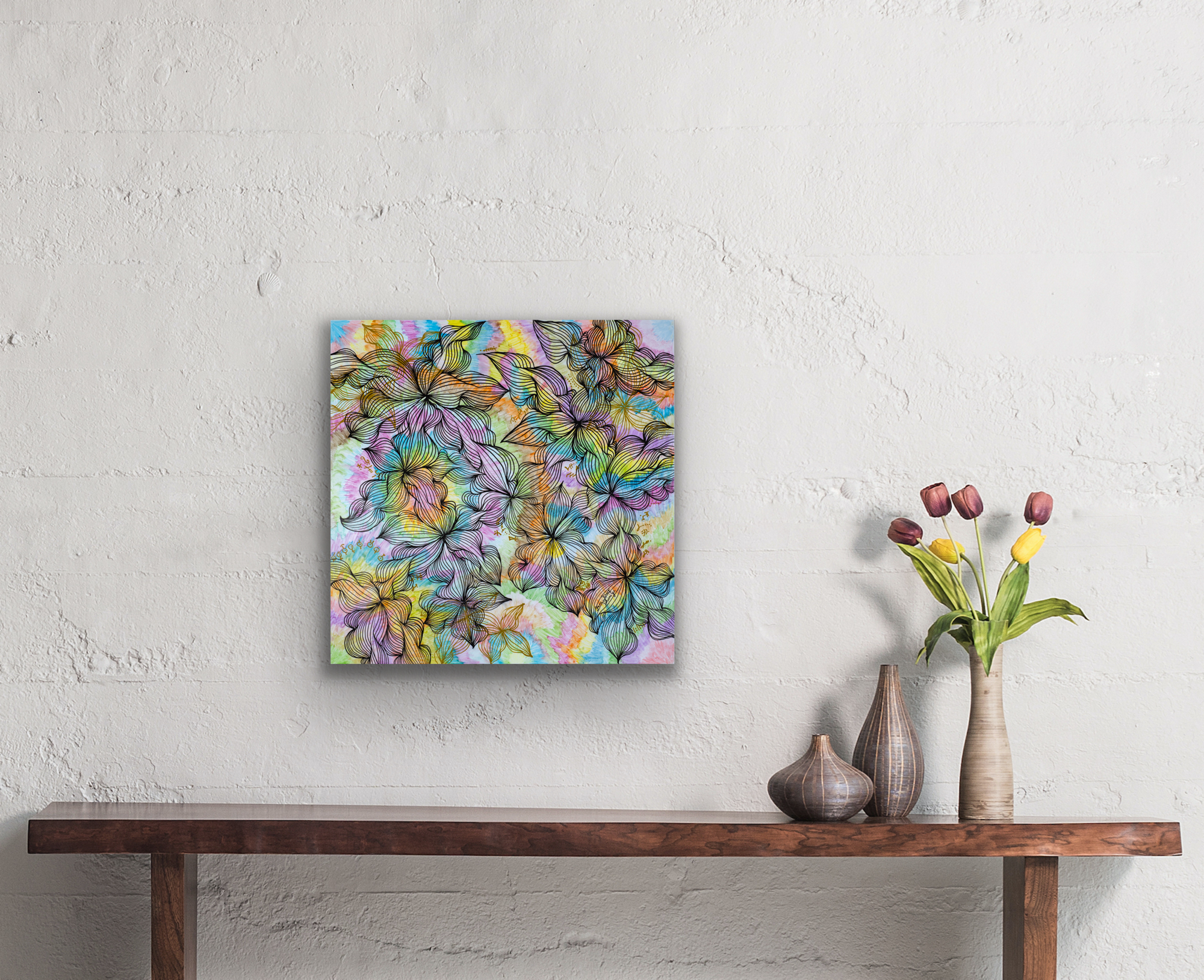 Each painting is signed and dated, and a wire hanging fixture is installed. I protect my paintings with several layers of Isolation Coat and Archival Gloss Varnish. You can immediately enjoy your art in your home or office without the barrier of a glass frame, so the energy and love of the painting comes through directly to you.