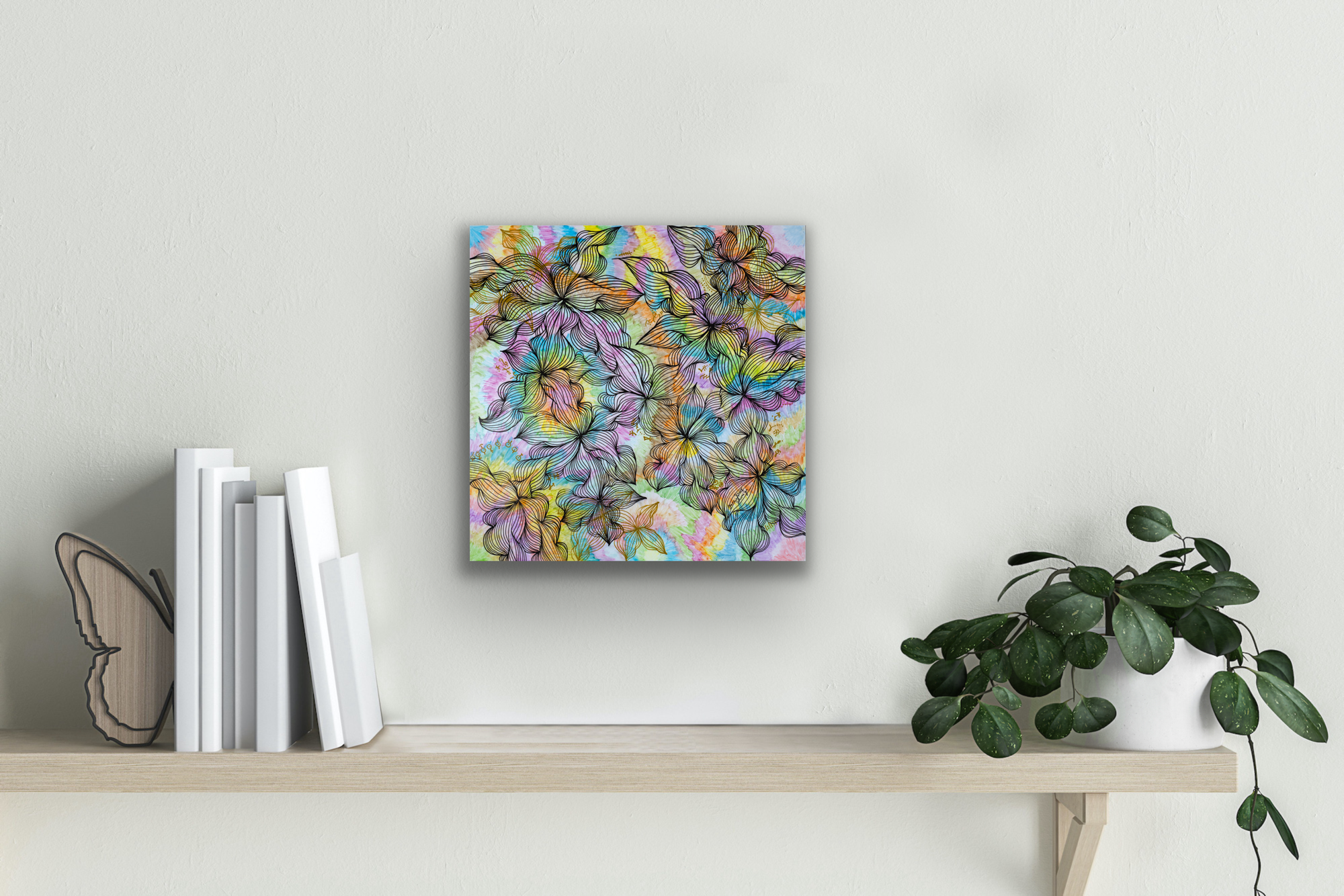 Watercolor pencils, acrylic, and ink; mounted on premium cradled wood board.