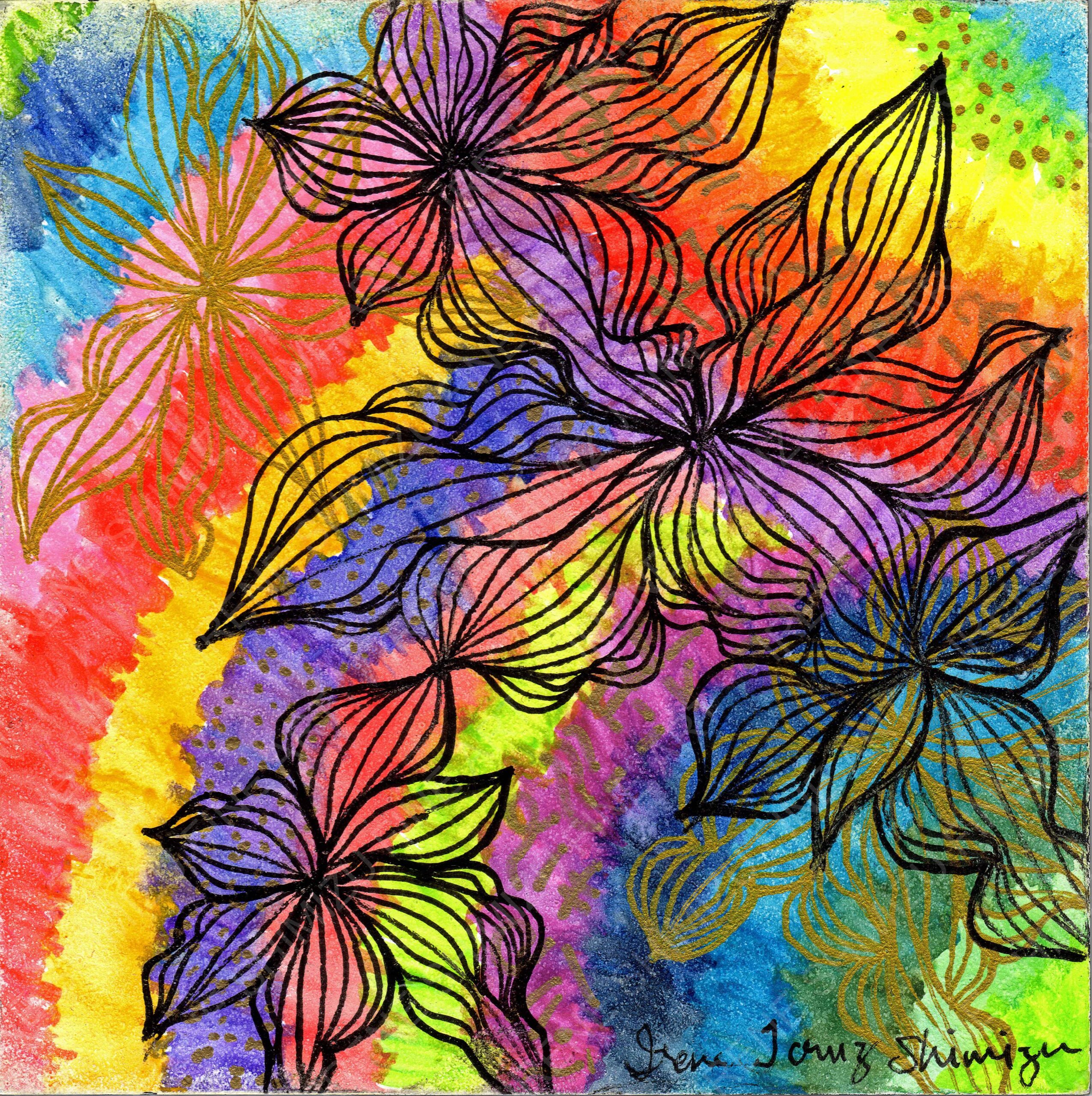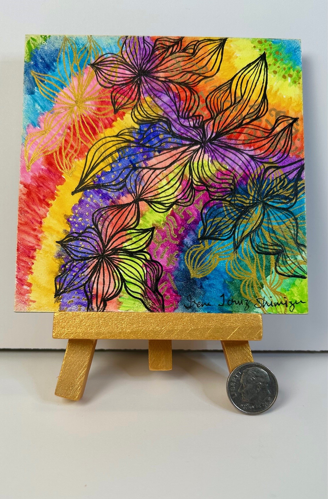 Gouache, pen, and metallic watercolor, on a museum-quality wood panel.