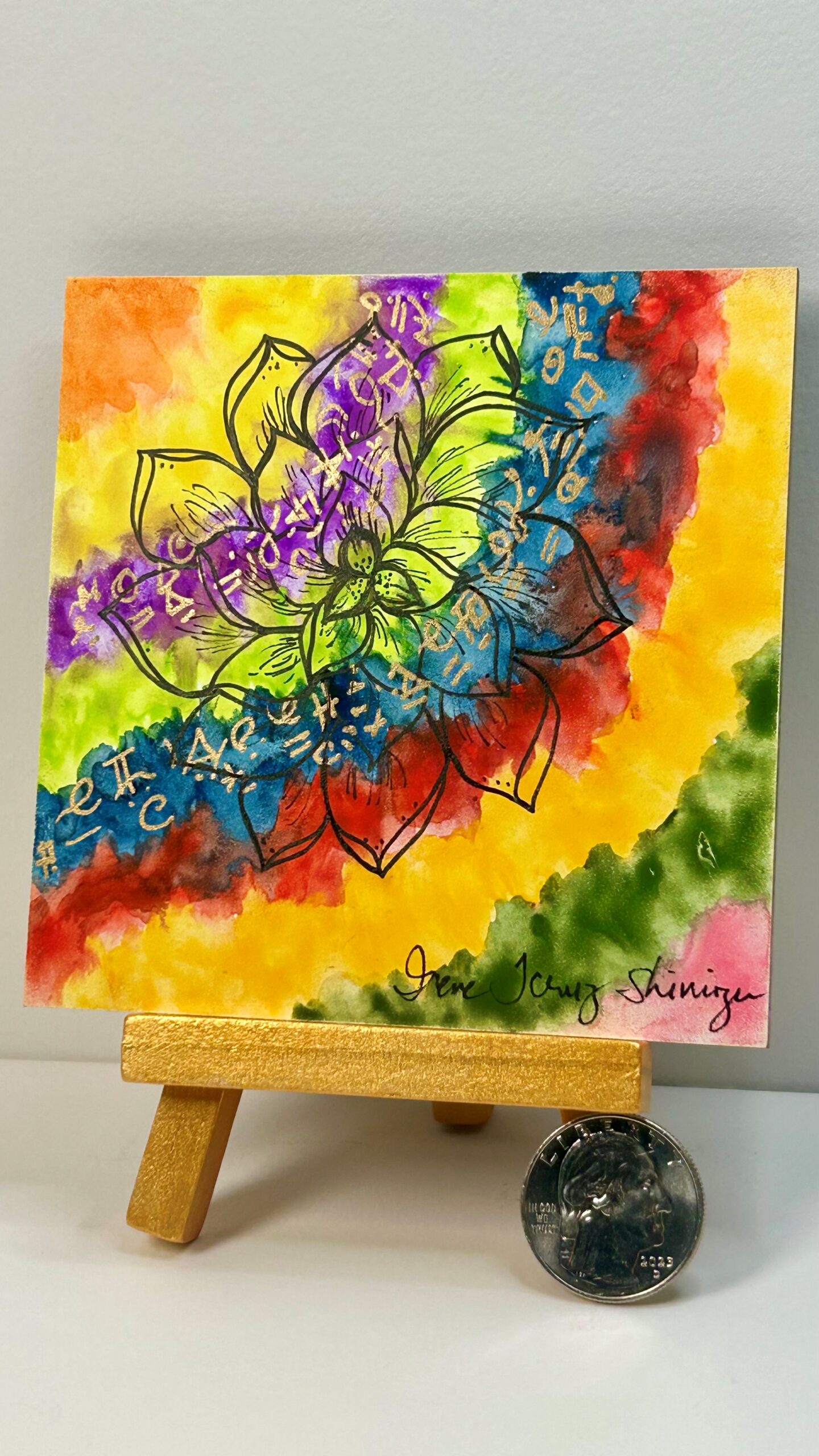 Each painting is signed and dated, and includes a golden wood easel. I protect my paintings with several layers of Isolation Coat and Archival Gloss Varnish.  You can immediately enjoy your art in your home or office without the barrier of a glass frame, so the energy and love of the painting comes through directly to you.