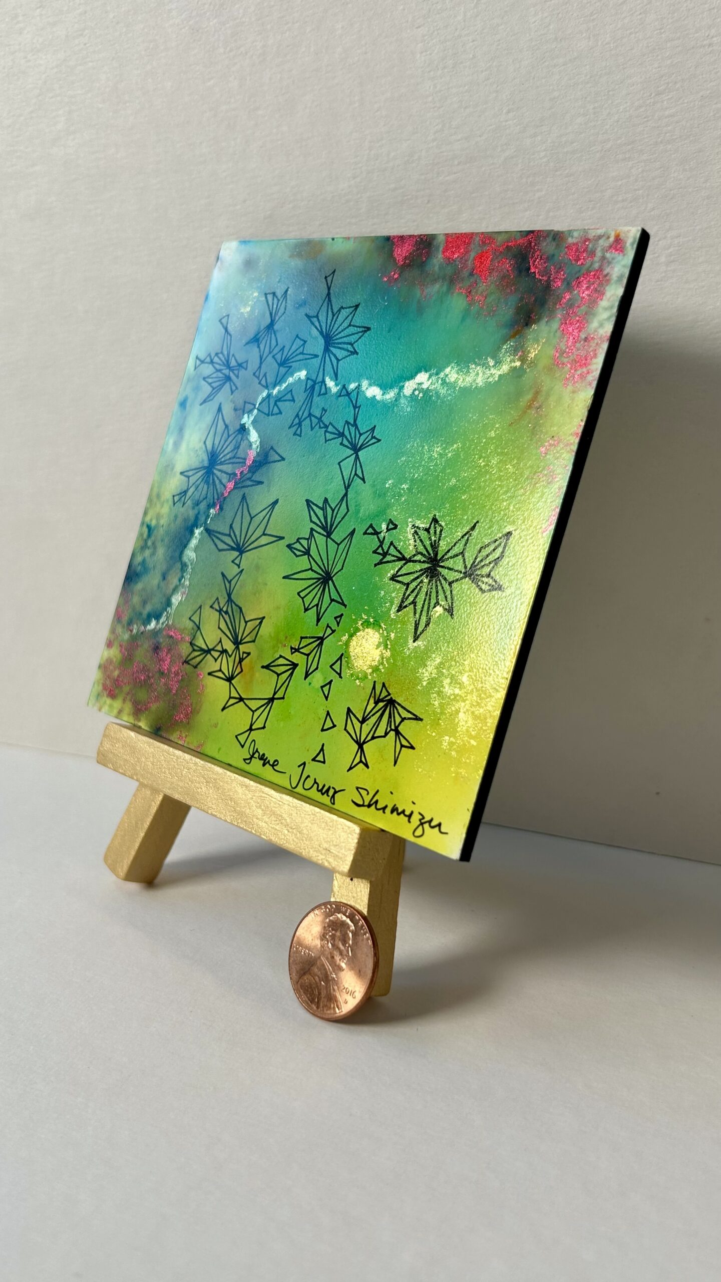 Each painting is signed and dated, and some include a golden wood easel. I protect my paintings with several layers of Isolation Coat and Archival Gloss Varnish.  You can immediately enjoy your art in your home or office without the barrier of a glass frame, so the energy and love of the painting come through directly to you.