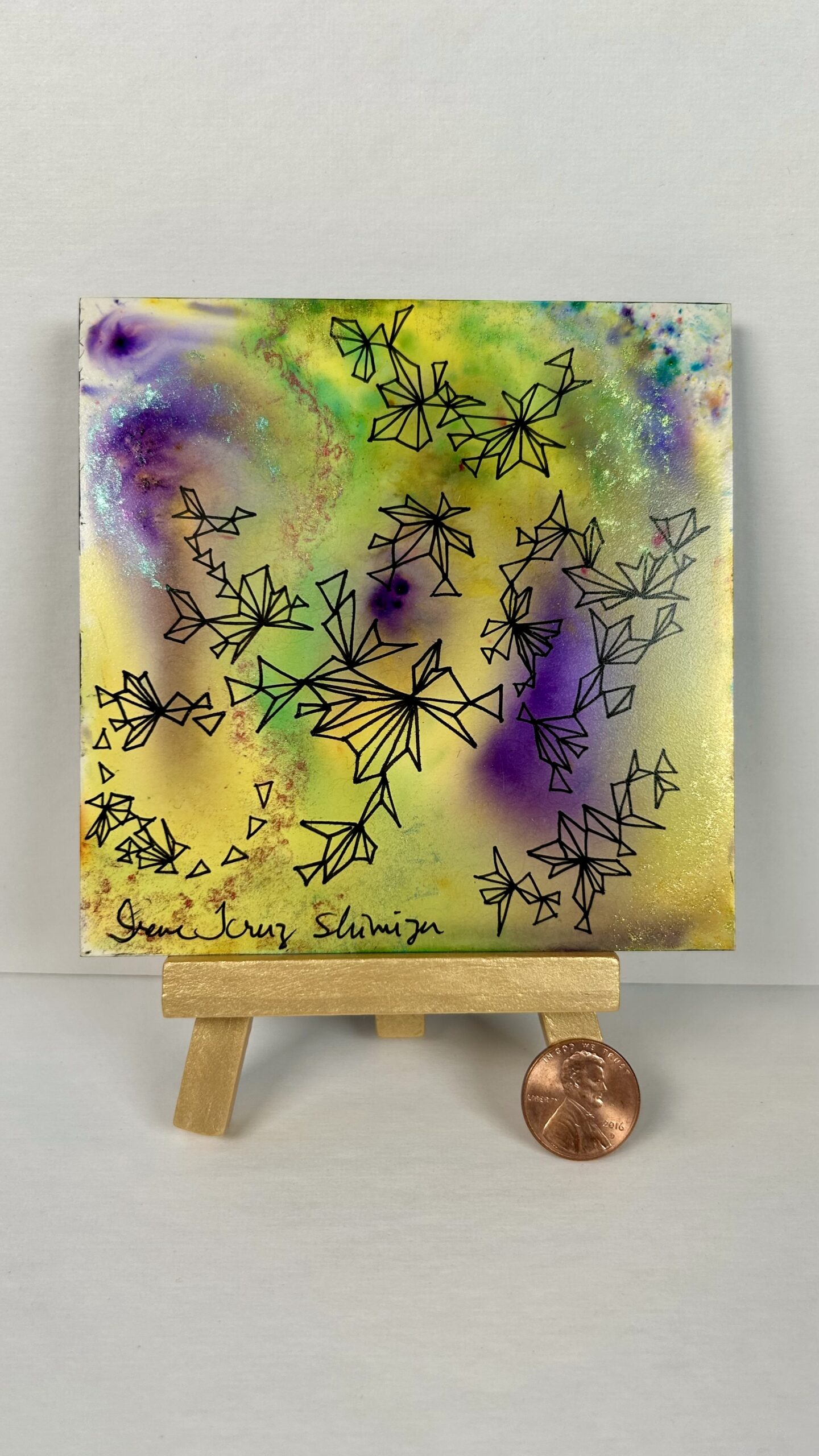 These SACRED ORIGAMI paintings recently came forth to me so strongly one quiet morning. I was doing some fun sketching with fine-line pens and swatching of different paint colors. Little miniature origami sketches kept coming to me one after the other! These sketches caught my eye and my heart and became my SACRED ORIGAMI paintings. I’m grateful to bring these childhood memories of joy and creation into different paintings now.