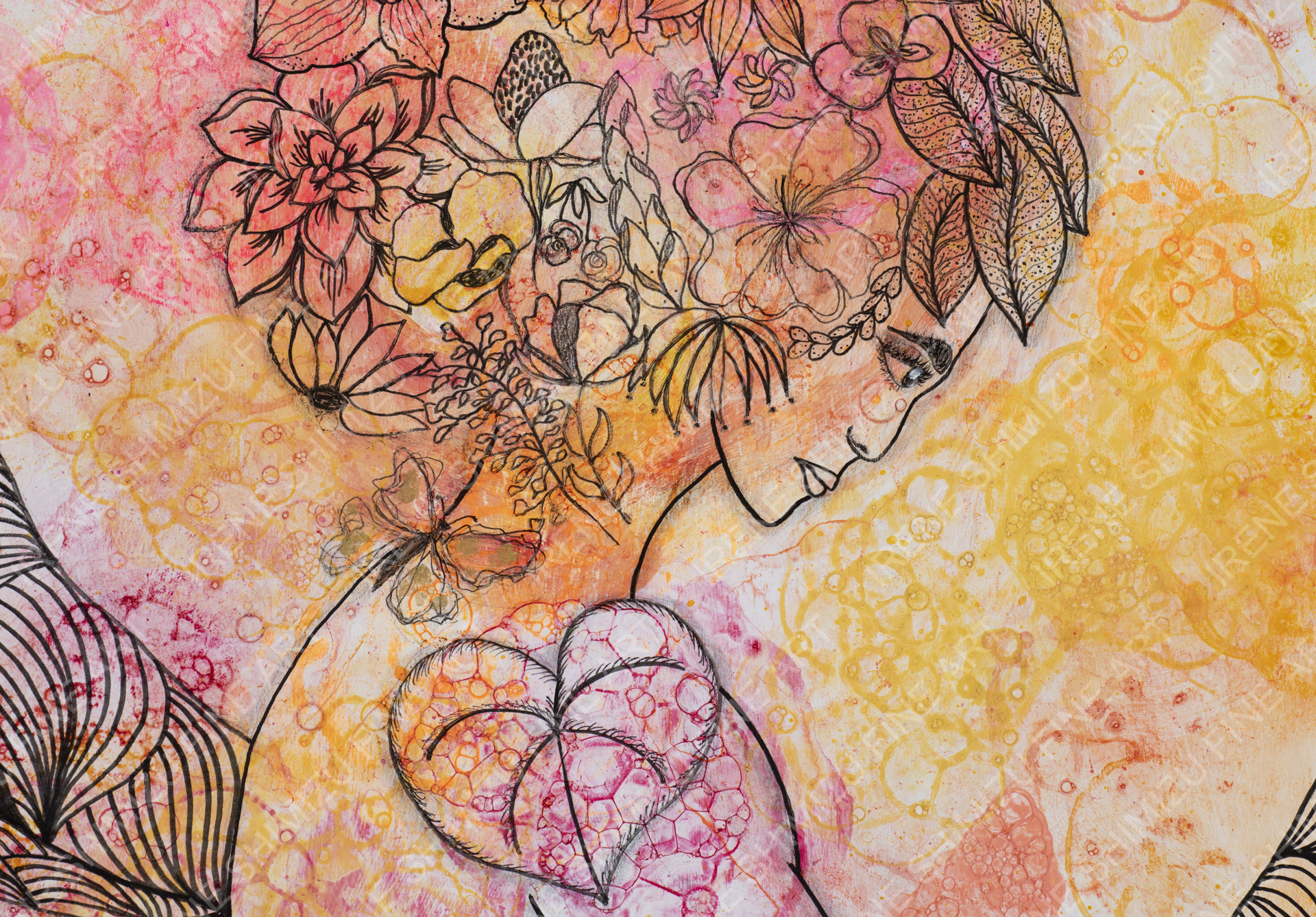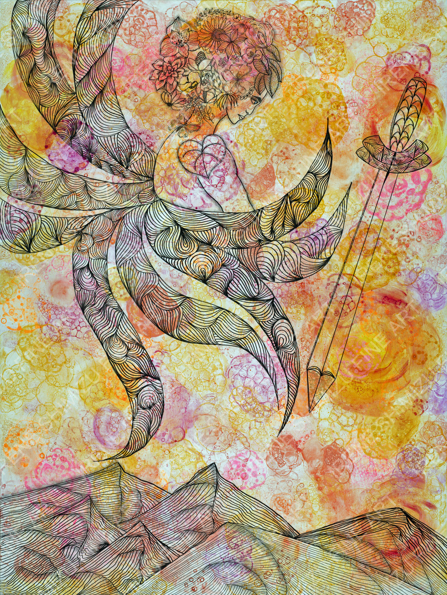 This Giclée print of my original painting is printed on museum-quality Hahnemühle paper with a white border. I hand-embellish many of the prints with gold metallic accents. This particular print has extensive gold detailing and embellishments which are all done by hand. The delivery timeframe for this print will be 10-14 days after an order is received due to the additional detail work done by hand. Your print will arrive in a protective clear sleeve, supported by board backing and inside a sturdy cardboard sleeve.